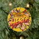 Personalise the name and photo to create a fun trendy superhero comic book pop celebration ornament. Comic book pop art themed modern fun retro design, perfect for weddings, bridal showers, baby showers, baptisms, engagement parties, anniversary celebrations, graduations, birthday get-togethers and other special events throughout the year! A cool, trendy and fun design that puts the wham zap pow into your day. Why not add some zap pow and wham into the world today! Designed by ComicBookPop© at www.zazzle.com/comicbookpop*