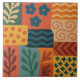 Fun Retro Garden Collage Pattern Motif Ceramic Tile