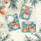 The three sheets are each a bit different, but all from similar retro pattern illustrations. Little orange and white cat faces topped with colourful Santa hats amidst assorted holiday decorative elements. The teal background indicates the set of three will be a compatible grouping for your gift giving. We think the per lovers you know will be happy that they are on your winter holiday list.