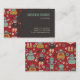 Fun Retro Robots Illustrated Pattern (Red) Business Card