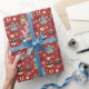 Fun Retro Robots Illustrated Pattern (Red) Wrapping Paper