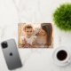 Merry Christmas Script in real gold, wishing your loved ones in style. Your photo on the back or current backing pattern. Traditional Calligraphy style. Lettering style. Big photo design. Happy, festive design. Merry Christmas in beautiful gold script.