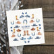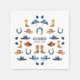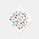These kids' birthday party paper napkins feature a charming Western-themed design, perfect for boys or girls celebrating am outdoor rustic birthday at the farm. The pattern showcases a watercolor illustration of cowboy hats, horse riding boots, and horseshoes in rich blue and brown tones. Set against a clean white background, the earthy hues and delicate brushstrokes bring a rustic yet playful feel to the design. Below the graphic, there’s space for a customisable name in modern, playful blue script and a simple black date in clean typography, adorned with small watercolor blue leaves, adding a personalised touch while keeping the Western vibe fresh and fun.