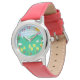 The original and cute sheep illustration on this original and fun watch is a painting in a "nieve" sort of style, it's bright and colourful. The picture shows some white and fluffy black faced sheep grazing behind daffodils on the hillside as the large sun shines down upon them. In the background you can see small leaf covered trees with red apples on them. This unique kiddies watch has the fun slogan "May the sun always shine on Ewe!" and is suitable for people of all ages.