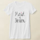 I purchased this shirt and a matching men's one for my grandaughter and her fiance. They were both thrilled and wore them immediately. The quality of the shirts was good and the design was bold and easily seen. I would recommend these shirts to newly engaged couples. The design was colorful, bold, and easily read