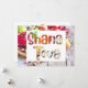 Fun Shana Tova on a watercolor design of pomegranates, honey and apples. Everything you need to celebrate Rosh Hashanah this year. Text on back reads "Wishing you a sweet, happy and healthy new year." which you can change out, as well as the family name. Just click on Personalise this above to make the changes for your Jewish New Year wishes.