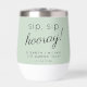 Give a wedding toast and a fun and unique souvenir keepsake gift to yourselves and your wedding guests with this personalised sage green thermal tumbler featuring "Sip Sip Hooray" and your names "Got Married Today." You can change the sage green background colour if desired by editing in the design tool.