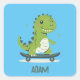 Fun Skateboarding Dinosaur With Kids Name Square Sticker