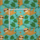 Fun kid friendly sloths and vines in a repeat pattern with blue background.
