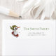 Fun and whimsical winter return address label with a snowman riding a sled. Illustrated and designed by Patricia Alvarez.