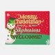 Fun Snowman with Family Name on RED Welcome Doormat