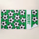 Here's a fun beach towel for any soccer player. It features a random pattern of soccer balls against a green background. Personalize with the name of your choice which will appear in green against a white band near the bottom of the design.