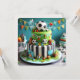 COOL SOCCER THEMED BIRTHDAY LAYER CAKE ON THE FRONT OF THE CARD. COMPLETELY EDITABLE COPY ON THE BACK.