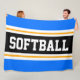 Fun SOFTBALL Bright Blue Black Athletic Stripes Fleece Blanket