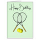 Two tennis rackets and tennis balls, Happy Birthday customise. You can also customise the inside text that now reads May all your opponents serve up love on your birthday. This sentiment offers a playful and positive spin on the competitive nature of tennis, suggesting that on a birthday, even opponents can share in the joy and good spirit of the occasion.