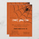 Fun Spooky Spider and Web Black Orange Halloween Invitation