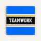 This sporty, athletic design features bold TEAMWORK text inside a highlighted wide black stripe with double white and yellow racing stripes against bright blue outer stripes. The text in this design can be personalised.