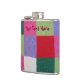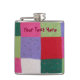 The original knitted patchwork design on this unusual quirky customisable hip flask has a very traditional hand knitted appearance, the knitted striped image has been taken from a photograph of an original hand knitted pattern. The original piece of colourful hand knitting has been photographed to show it looking natural and "pre loved" you may even see a few pet hairs! and there will be bobbly bits, stray threads and creases, this all makes up the natural shabby chic look of a much loved and quirky knitted item. The patchwork image gives this fun phone case a vintage appearance. This is a customisable hip flask, you can personalise it with your own text.