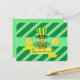 Wish a friend a Happy St. Patrick's Day. This design features a green striped design with an owl and "Happy Saint' Pat's Day" banner. The green background on the back is easy to personalise.