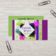 fun stylist business card colourful template playful and bold lime green and purple custom design double sided to personalise. Original abstract art copyright Ann Powell