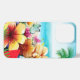 This flip iPhone case has a fun design for summer featuring a beach scene with flowers, palm trees, the beach and ocean in the background. The image is fun and colourful, making it perfect for creating a summer vibe.