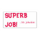 This motivating rubber stamp design features the message "SUPERB JOB!" and a customised teacher name. It could be used by a teacher or educator when grading student work, to acknowledge that a student has done an exceptional job.