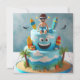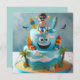 HANG TEN DUDE!! KIDS BIRTHDAY LAYER CAKE ON THE FRONT OF THE CARD. COMPLETELY EDITABLE COPY ON THE BACK.