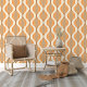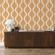 Fun Tan Brown Burnt Orange Ivory Ogee Wave Pattern Wallpaper