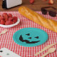 Fun teal jack o lantern pumpkin face Halloween Paper Plate