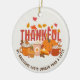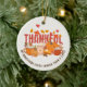 Fun, personalised Thanksgiving Pumpkin THANKFUL LONGER THAN A LATTE Ceramic Ornament with CUSTOMIZABLE TEXT. Ideal way to get ready for the Thanksgiving season. The design shows an array of pumpkin treats and autumn fall leaves with THANKFUL in bold typography. Underneath the curved text MY GRATITUDE LASTS LONGER THAN A LATTE is customisable so you can personalise with your own text or add your name. This THANKFUL Thanksgiving ornament will ensure you decorate your home for the Thanksgiving season in style and is a perfect gift to show your appreciation to your favourite neighbour, nurse, volunteer, etc. Also in blue. You can change the background colour.