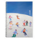 Colourful and festive. This winter holiday Notebook features skiers in multi-colour gear gliding down snow covered slopes for the holidays. The set of contemporary fonts are a mix between modern and old-school, setting a festive and joyful tone. Personalise this item to make it your own.