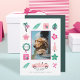 Celebrate the festive holiday season with our fun tropical, festive and colourful holiday photo card. Our festive tropical design features a single photo in the middle of the card to display your own fun family photo. The photo is framed with various tropical Christmas theme illustrations including a pink convertible, palm frond wreath, palm trees with lights, present, tropical flower bow, etc. The words fa la la and let's roll are displayed over the pink convertible. All artwork contained in this girly and fun topical Christmas & Convertable holiday card are hand-drawn original artwork by Moodthology Papery.