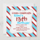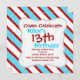 Fun Turquoise Blue Red and White Diagonal Stripes Invitation