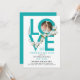 Fun Turquoise Love Celebration Script Photo Floral Invitation