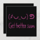 Brighten someone’s day with this playful Unicode "get better soon" card featuring a vibrant neon pink sad face and fun handwritten style message on a solid black background. This quirky design combines modern geeky text art with bold colours, making it a memorable and uplifting way to send well wishes. Easily customise the message and colours to create a cheerful and personalised card perfect for encouraging friends or family with a touch of humour and style.