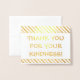 This fun, upbeat gold foil thank-you greeting card design features the message "THANK YOU FOR YOUR KINDNESS!" on the front, along with a personalised message on the inside. It could be used to show gratitude to somebody who has done something special.
