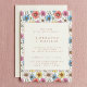Featuring a vibrant watercolor border of hand drawn style wildflowers in shades of blue, coral, yellow, and blush pink. The design surrounds a crisp cream centre where event details are showcased in modern serif fonts. The uncluttered layout and lively floral motif blend contemporary sophistication with romantic charm, making this invitation ideal for spring, summer, garden, or bohemian-themed celebrations. The back remains clean for added details or a personal note, ensuring your announcement feels both joyful and timeless.