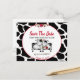 Mr. and Mrs Cow with wedding rings and a rose. Floral accent. Fun save the date postcard to send to wedding guests.