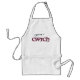 A sturdy white cotton apron with the Welsh word 'cwtch', meaning 'cuddle' or 'hug' in a Celtic script, filled with a red and green geometric pattern.