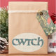 Mail a Welsh 'cwtch' to your loved ones! A sheet of oval stickers with the Welsh word 'cwtch', meaning 'cuddle' or 'hug' in a Celtic script, filled with a Paisley pattern on a linen-effect background.