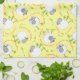 A fun Kitchen Towel or Tea Towel, with a pattern of comic sheep and 'Cymru am Byth' in Red, on a Sunshiny Yellow background that you can change if you wish.