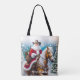 This fun Christmas design shows Santa decked out in a cowboy hat and riding a beautiful palomino horse through the snow.