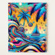 Personalised planner. Artsy pink, blue, orange and pink psychedelic ai depiction of a a sailboat on the ocean and colourful waves and palm trees.