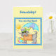 Reach out to a special friend to say "You are the Best" with this whimsy dog greeting card and customisable words that you can change to other messages. The friendship message inside is also customisable for your own words to your friend or friends. This cute grey (grey) dog is ready for fun time at the beach or pool with a colourful beach ball and a turquoise and lavender beach umbrella. Wearing cool yellow sunglasses, fuchsia and turquoise flip flops, orange beach tee shirt and a purple and green large brim hat, she's ready to go, dressed in style for the sun. The background is yellow. The dog with the sun, umbrella and ball is inside the card with a customisable greeting. The dog breed fits with terrior or other small grey dogs with medium to long hair. This design is cute for all dog lovers and is original art by artist and fabric designer Phyllis Dobbs. Fully customisable. Coordinate with stamps, party napkins and other matching items in this store.