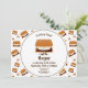 A s’more themed, kid’s birthday invitation with a s’more character in the middle. The invitation is horizontal with a s’mores and dots background pattern and a white and brown colour scheme. All of the words can be customised.