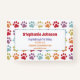Fun cute rainbow coloured paw print patterned design for dog walking and pet sitting. Purple, blue, green-yellow, orange and red patterned dog paw prints design on a white background. Great for dog walkers, pet sitters, groomers or just dog lovers!