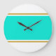 Fun Wide Retro Bright Aqua White Racing tripes Large Clock