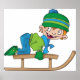 Fun Winter Sledding Boy Cute Snow Adventure Poster