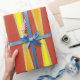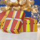 This wrapping paper would be fun and bright for any occasion! Its design is red and yellow triangles and diamonds, Bright and cheerful!