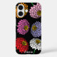 Fun Zinnia flower design personalised iPhone 16 Case. Colourful summer floral mix design. Customisable background and flower colours. Beautiful case to protect smartphone. Pink, purple, red, yellow, green, white and orange colours. Personalise with custom name. Trendy covers with popular floral print.